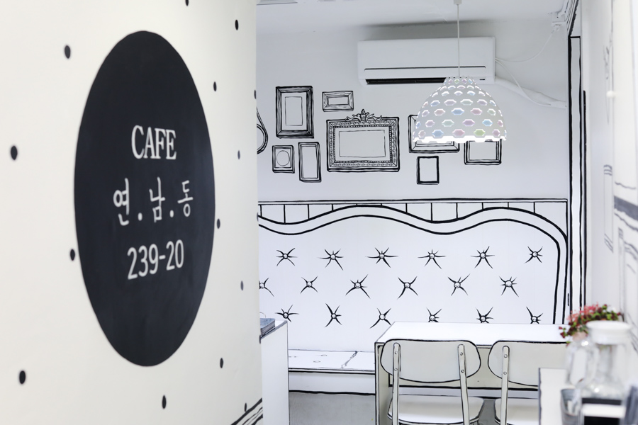De son vrai nom CAFE 연남동 239-20, on a l’impression de pénétrer dans un monde parallèle , celui du Webtoon. / From its real name CAFE 연남동 239-20, one has the impression of entering a parallel world, that of the Webtoon.